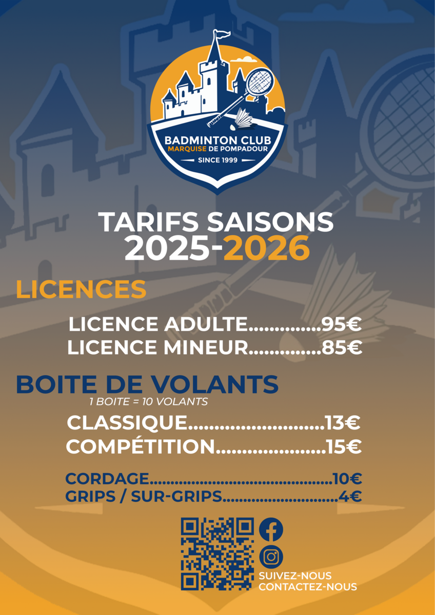 Comme précisé lors de l'assemblée générale, les licences restent au prix de 95 euros cette année et incluent une boîte de volant.